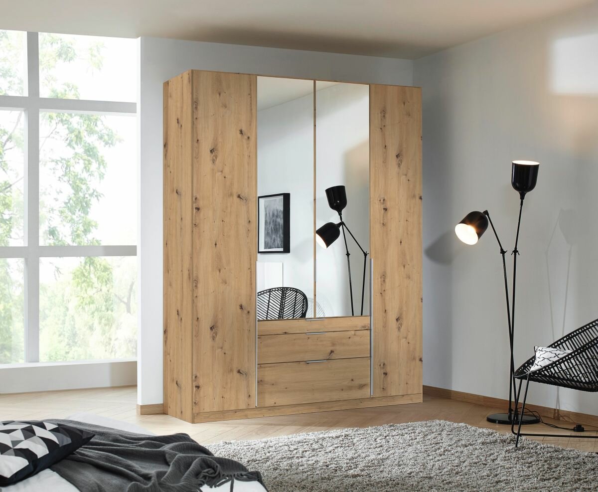 4-türig, 2 Spiegeltüren, 3 Schubkästen