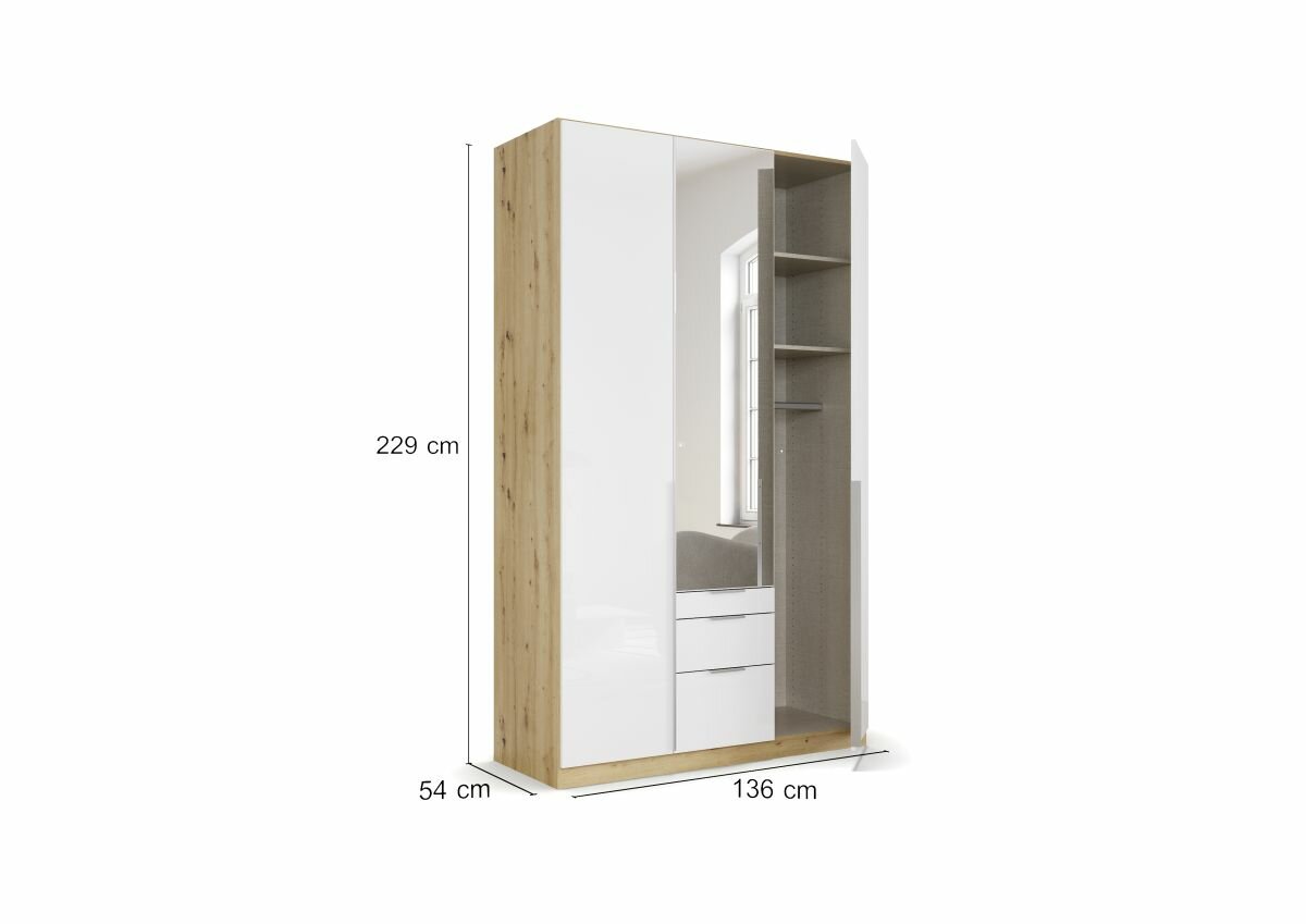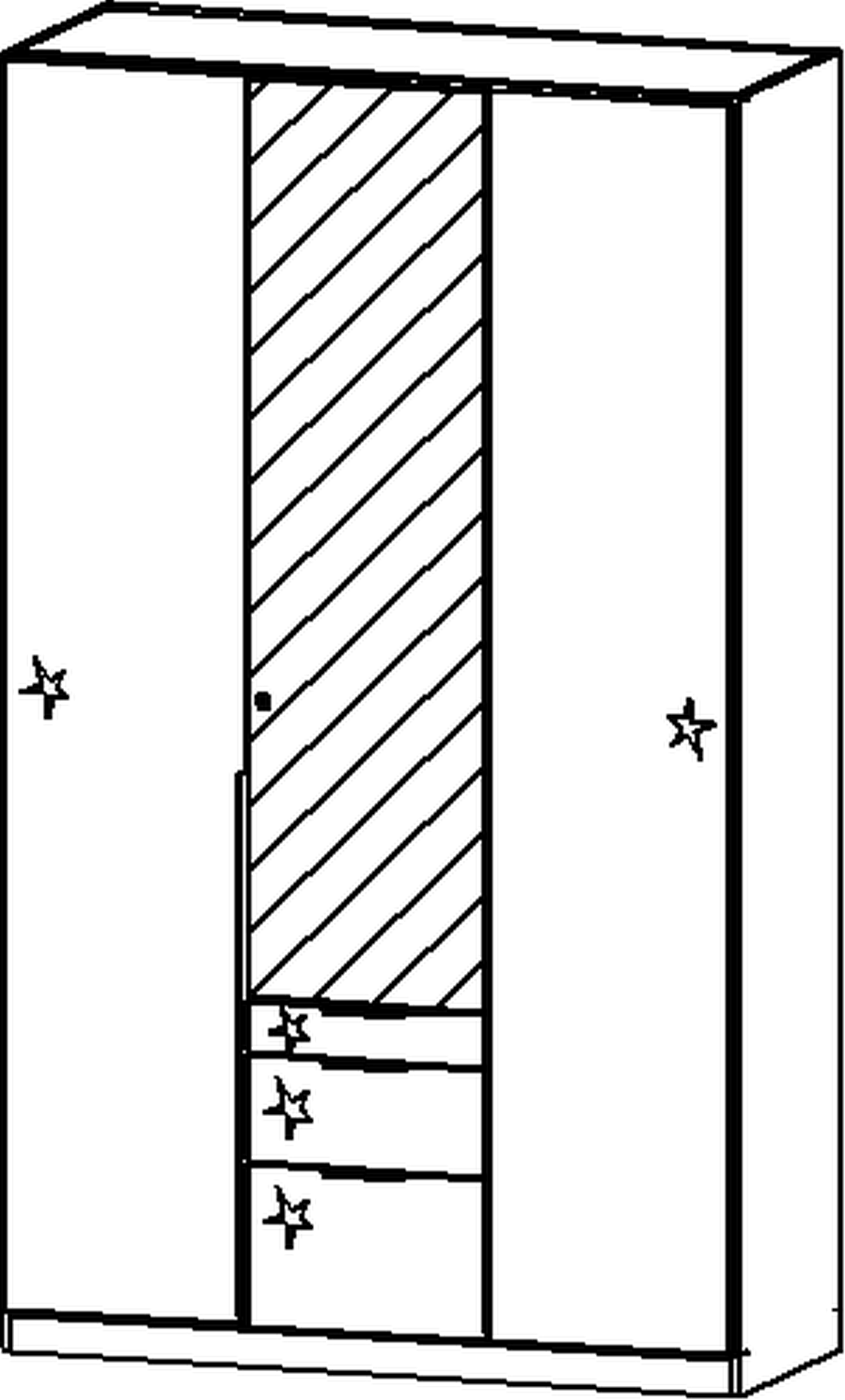 3-türig, 1 Spiegeltüre, 3 Schubkästen