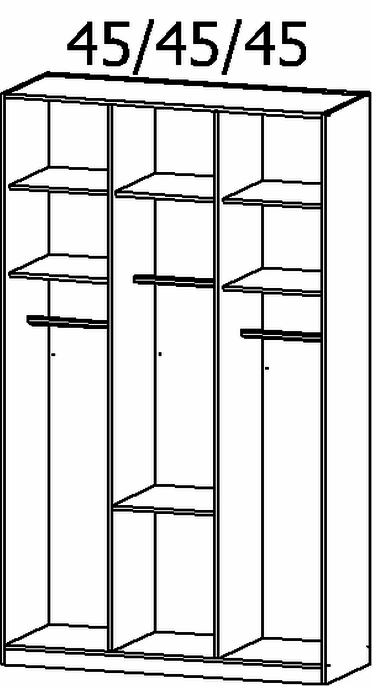5 Fachböden 3 Kleiderstangen