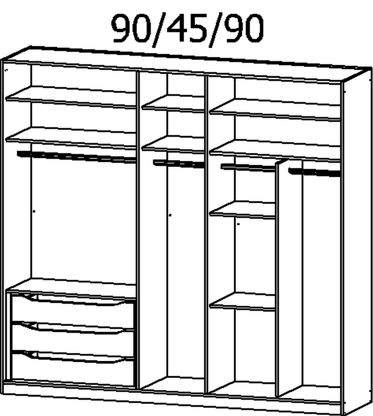 6 Fachböden 3 Kleiderstangen