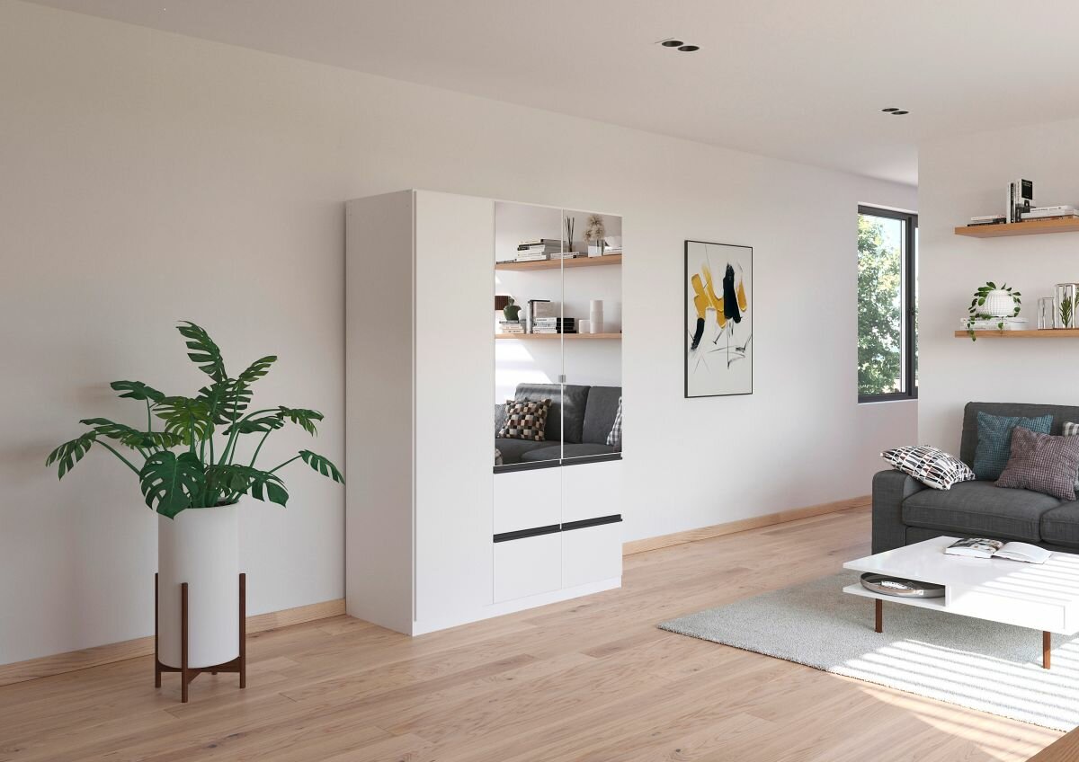 3-türig, 2 Spiegeltüren, 4 Schubkästen