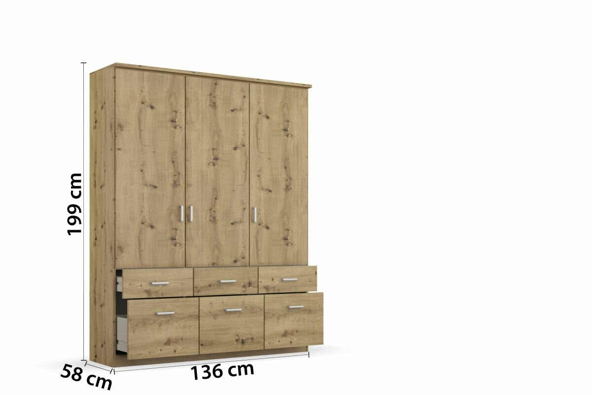 3-türig, 6 Schubkästen, mit Oberkranz