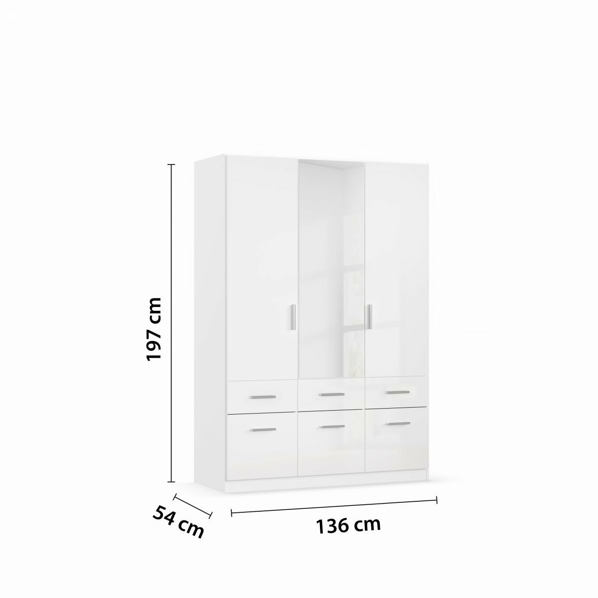 - Modellname Celle,3 -türig, 1 Spiegeltüre, 6 Schubkästen
