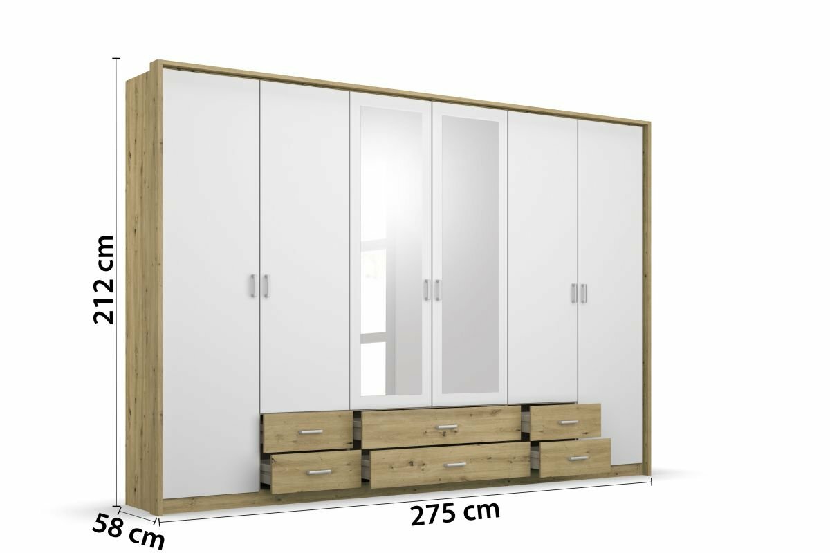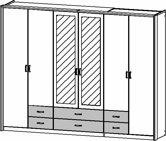 - Modellname Gamma, 6-türig, 2 Spiegeltüren, 6 Schubkästen