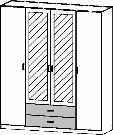 4-türig, 2 Spiegeltüren, 2 Schubkästen,
