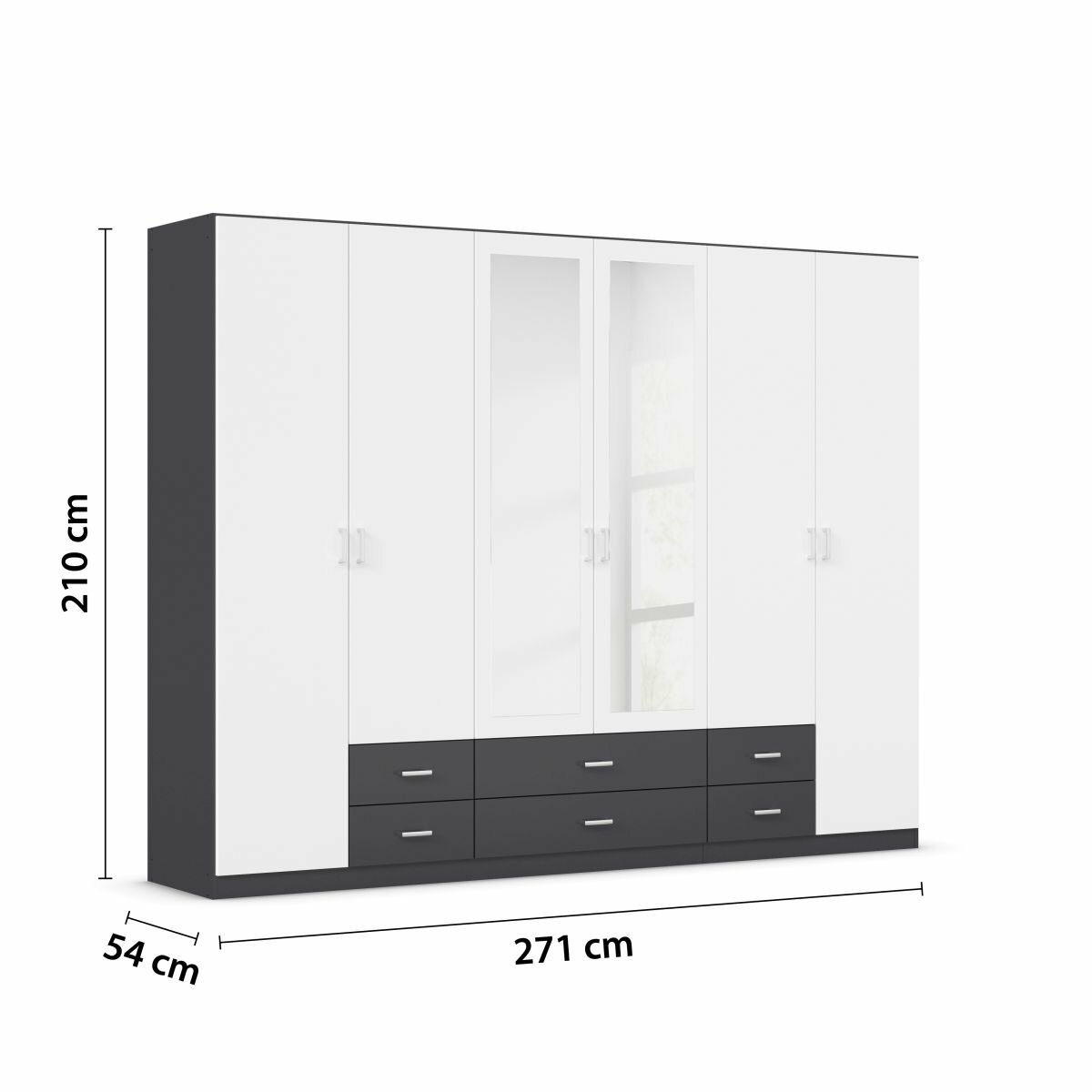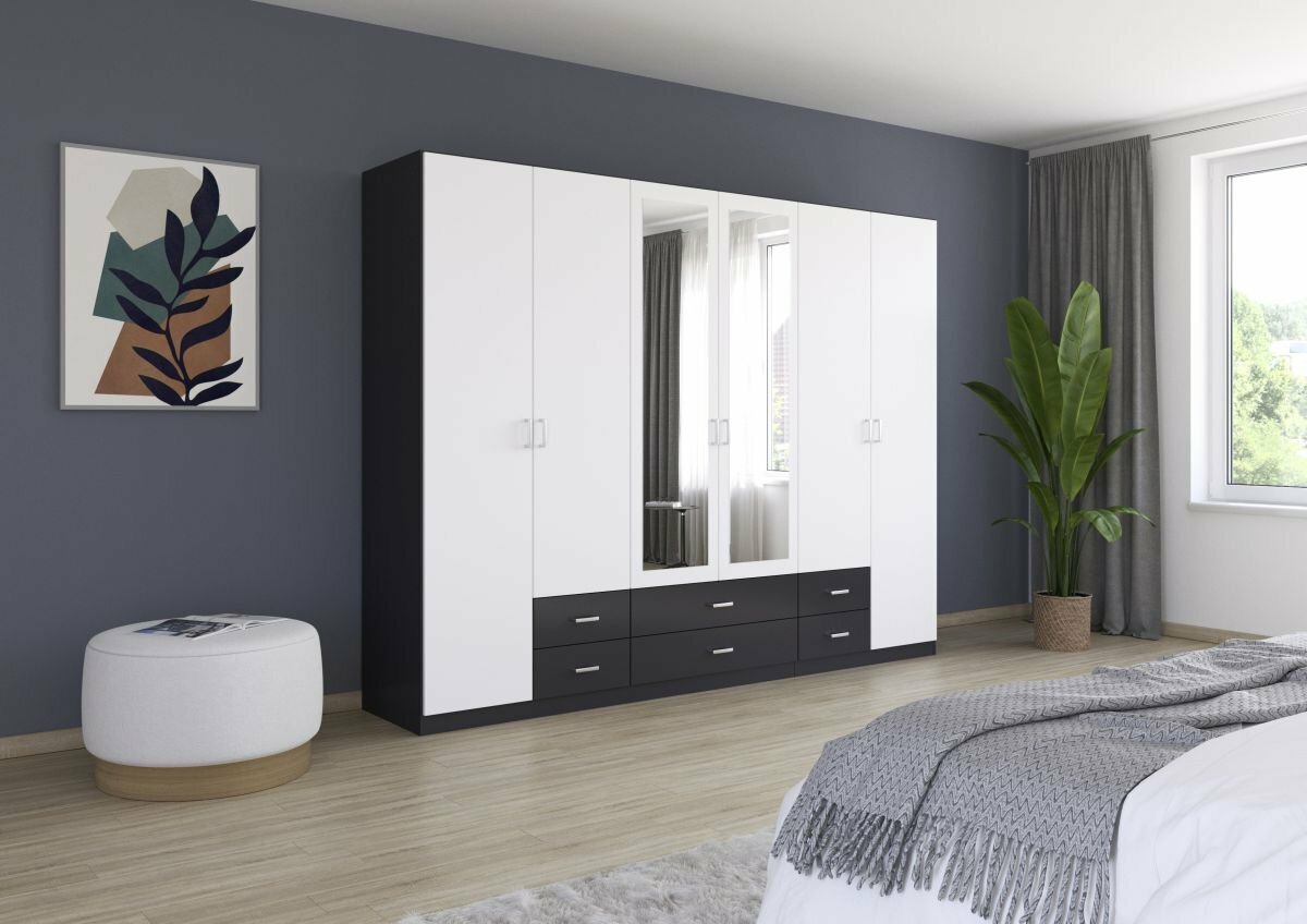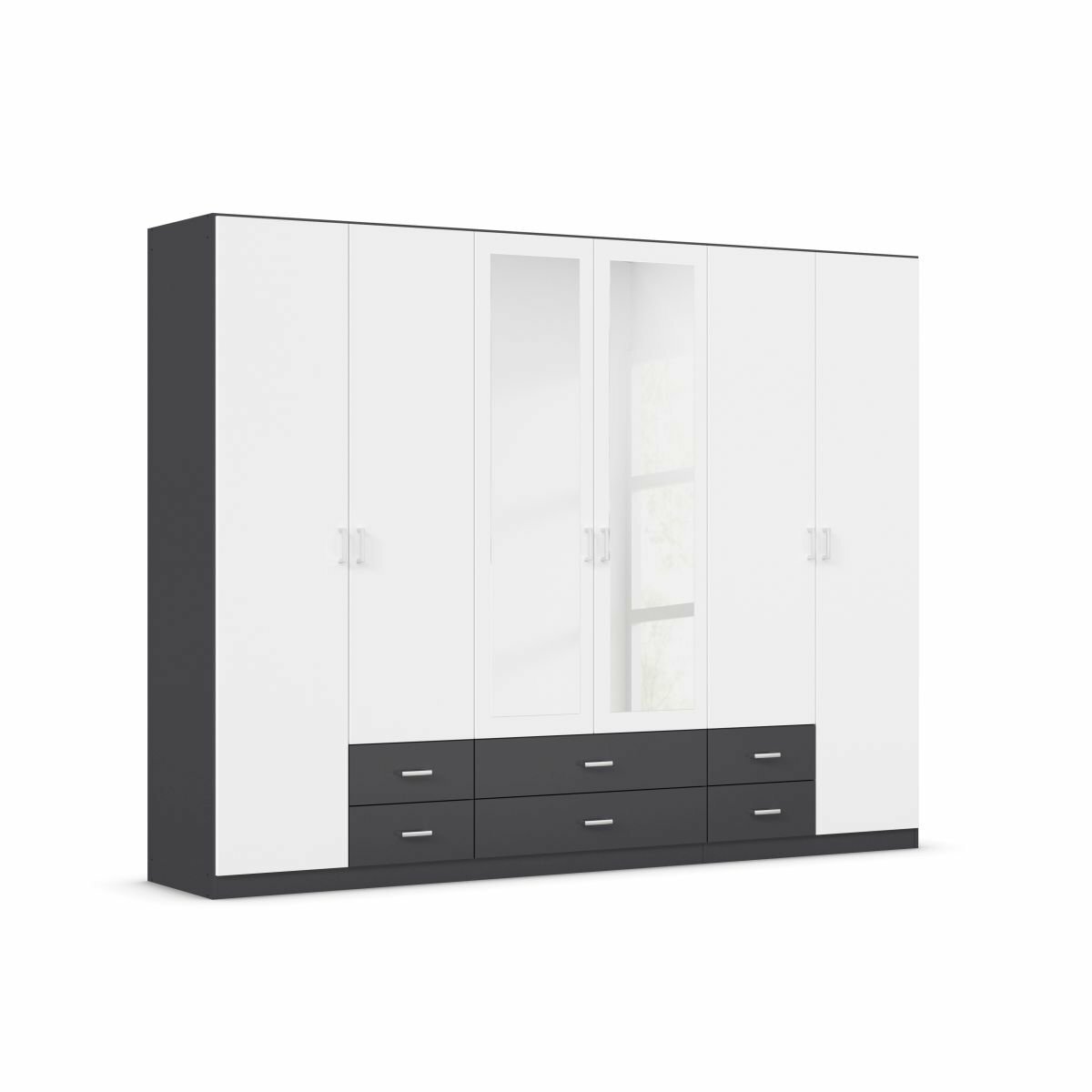 - Modellname Gamma, 6-türig, 2 Spiegeltüren, 6 Schubkästen
