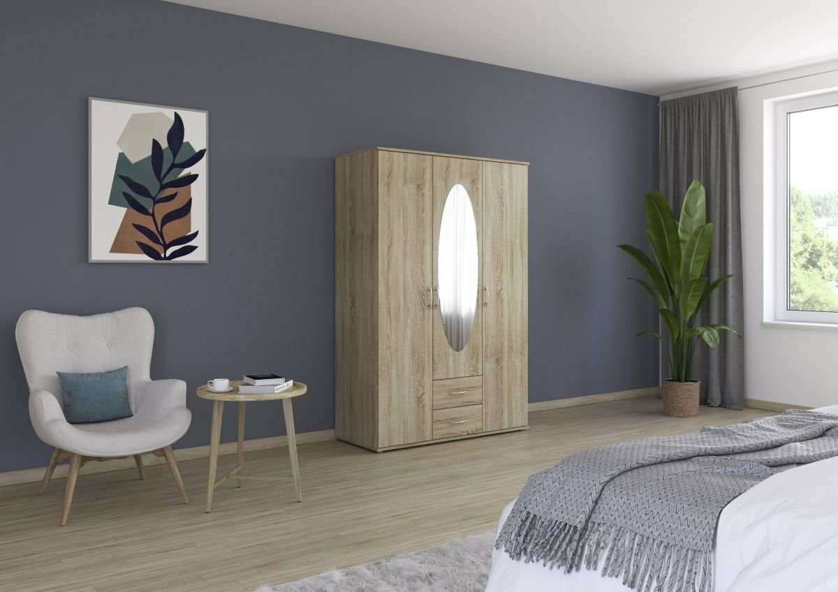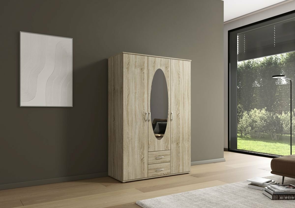 3-türig, 1 Spiegeltüre, 2 Schubkästen