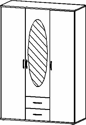 3-türig, 1 Spiegeltüre, 2 Schubkästen