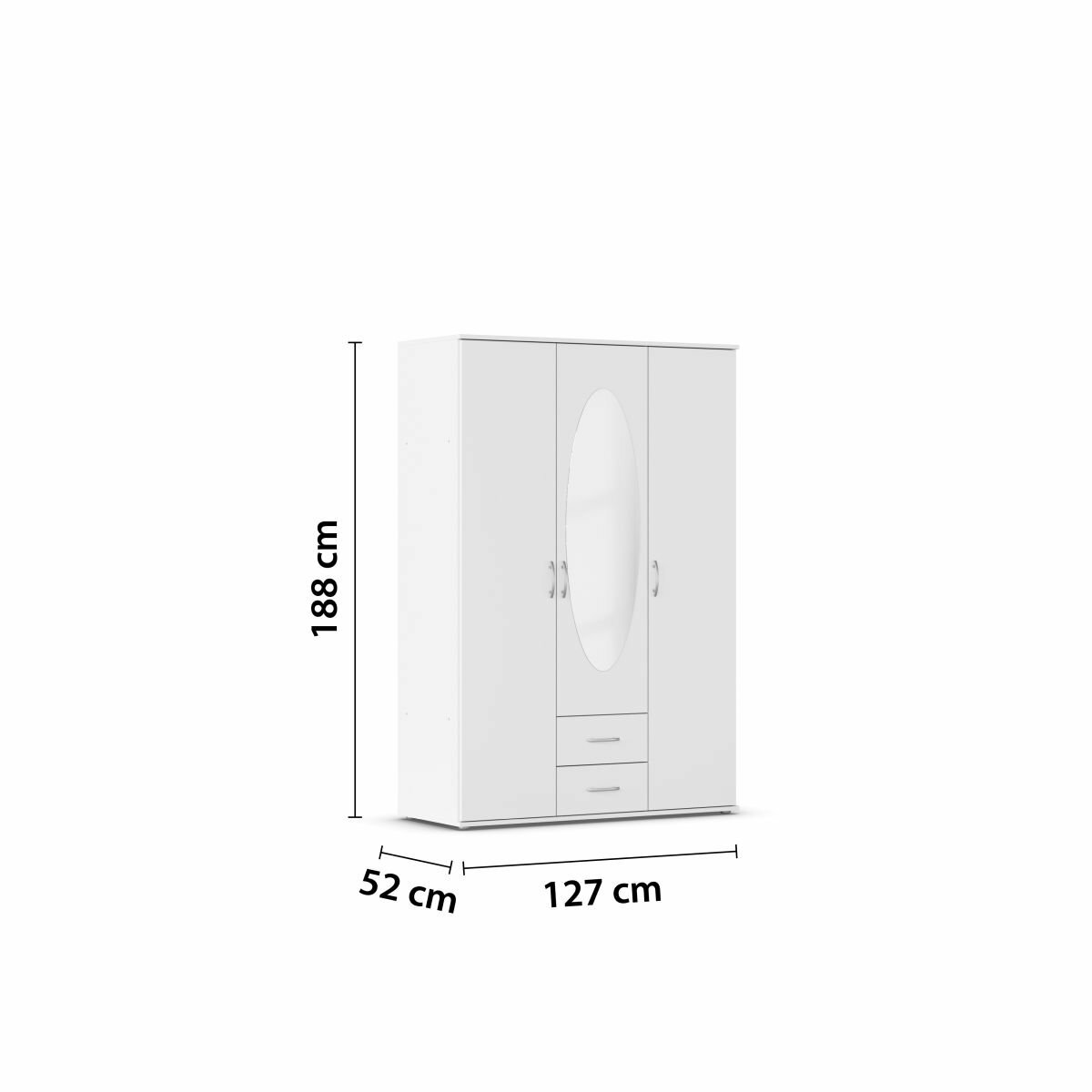 - Modellname Twin, 3-türig, 1 Spiegeltüre, 2 Schubkästen