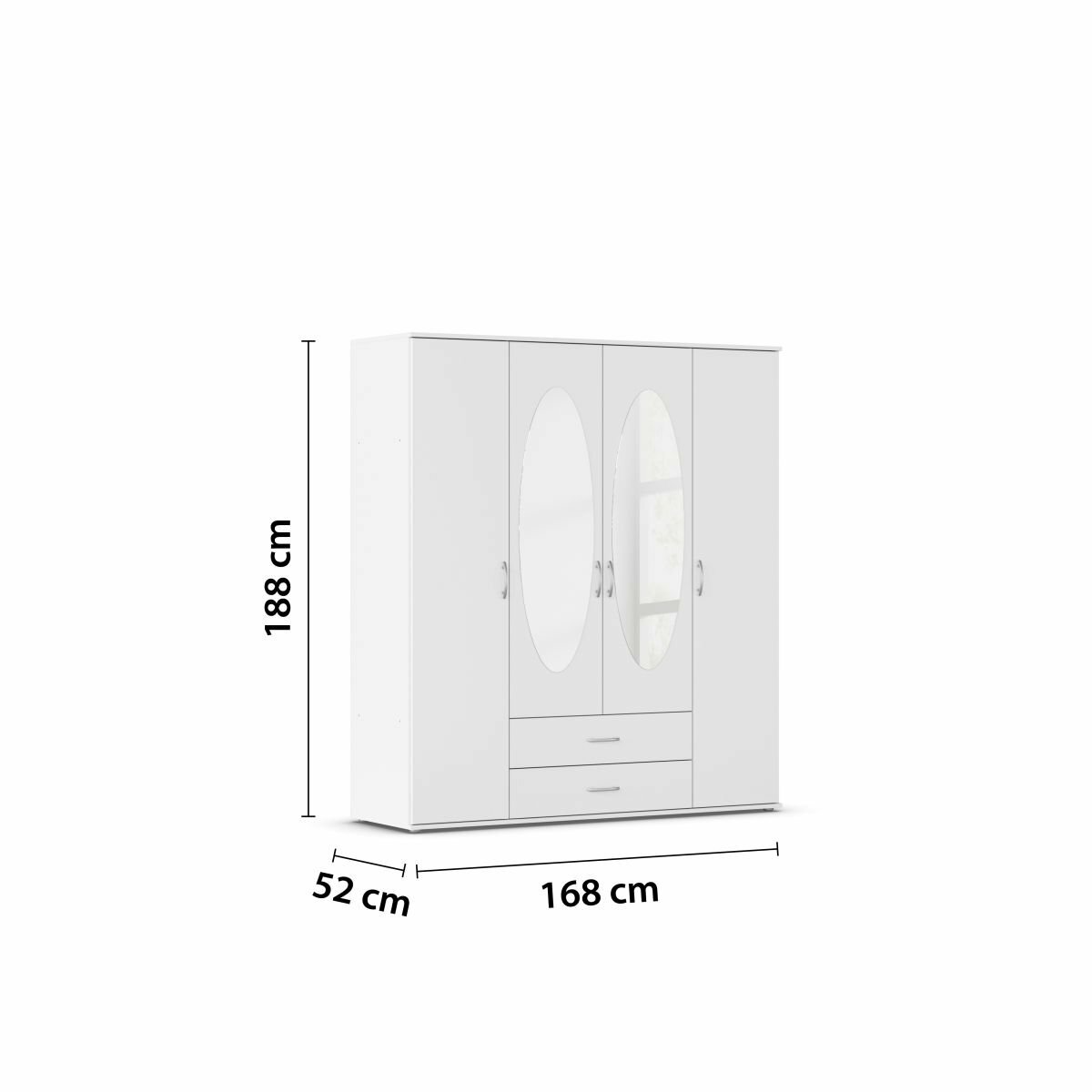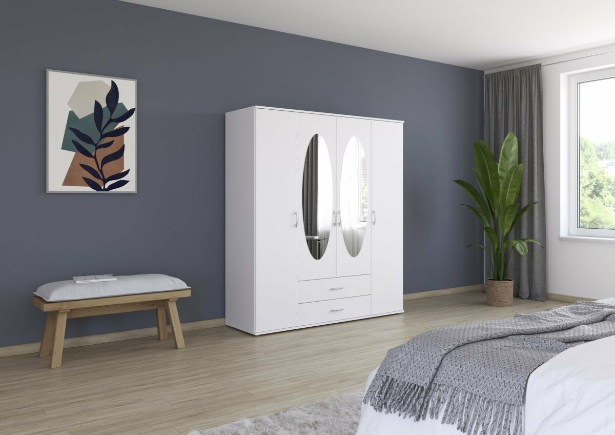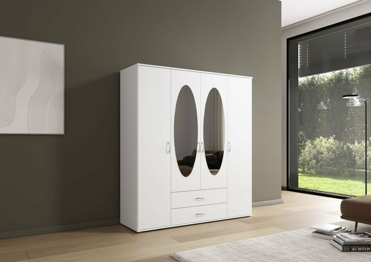 4-türig, 2 Spiegeltüren, 2 Schubkästen