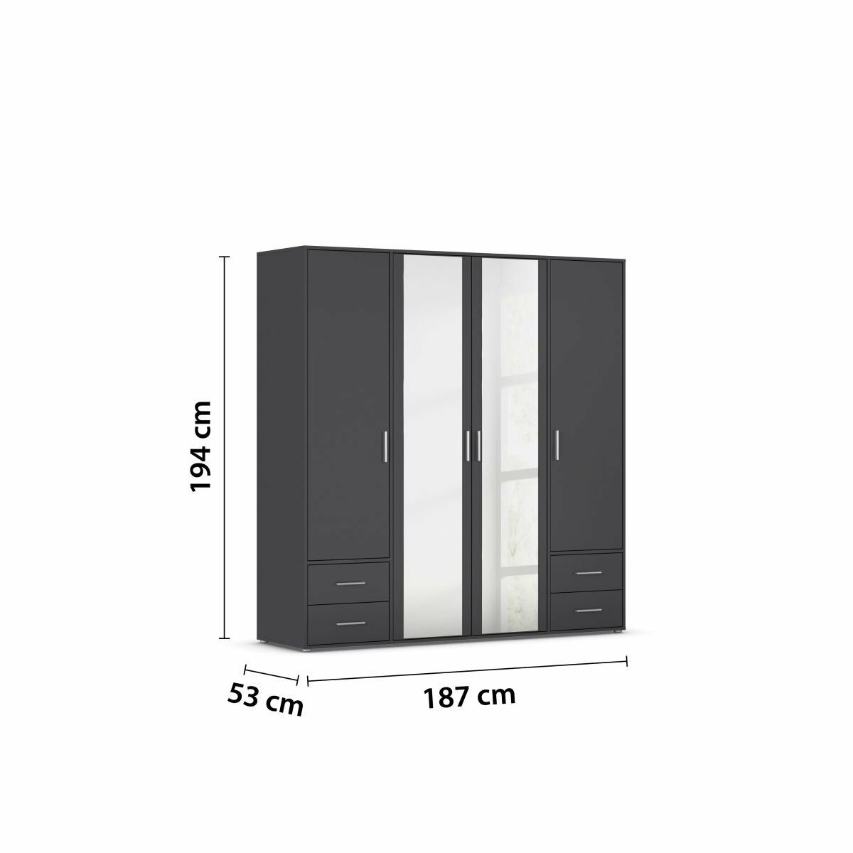 4-türig, 2 Spiegeltüren, 4 Schubkästen,