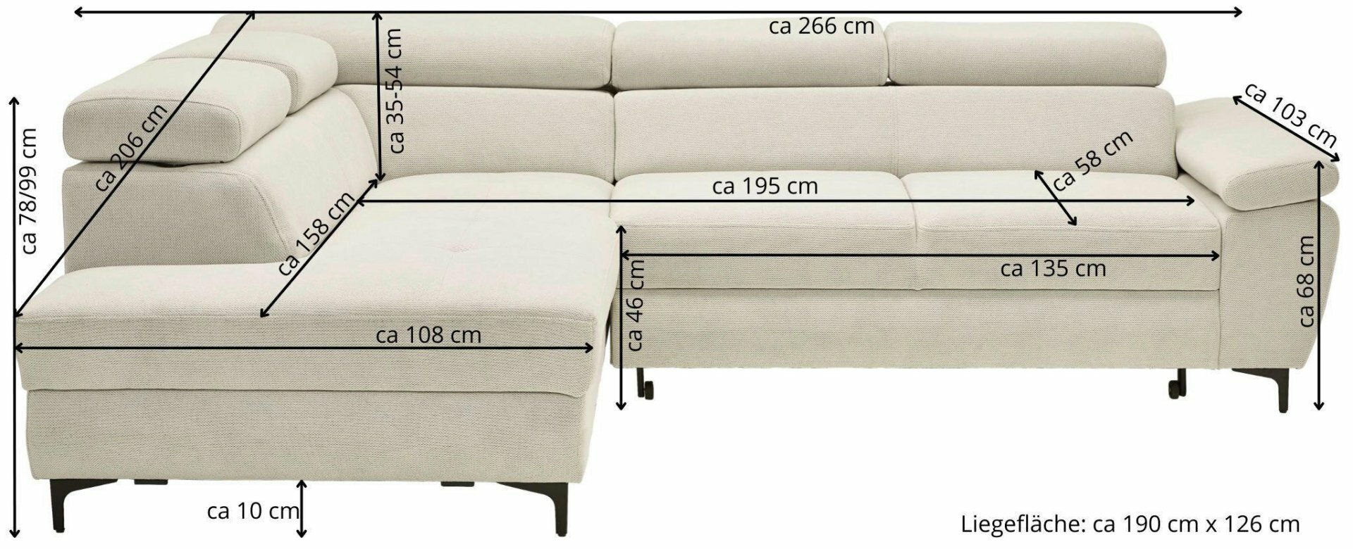 Schenkel in cm ca. 206/266/