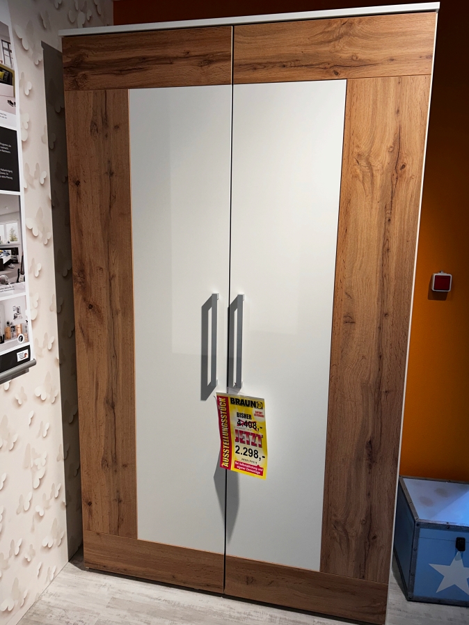 Kleiderschrank: Korpus und Front Weiß, Applikation Votan Eiche Nachbildung