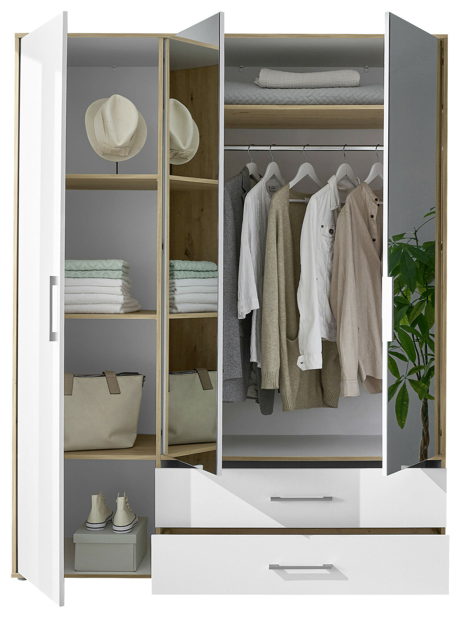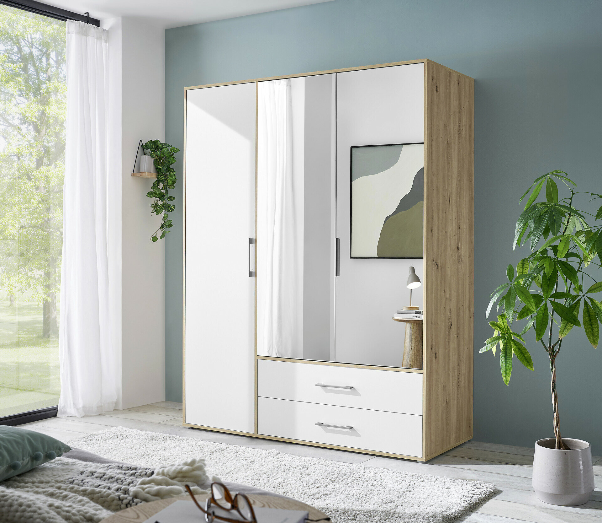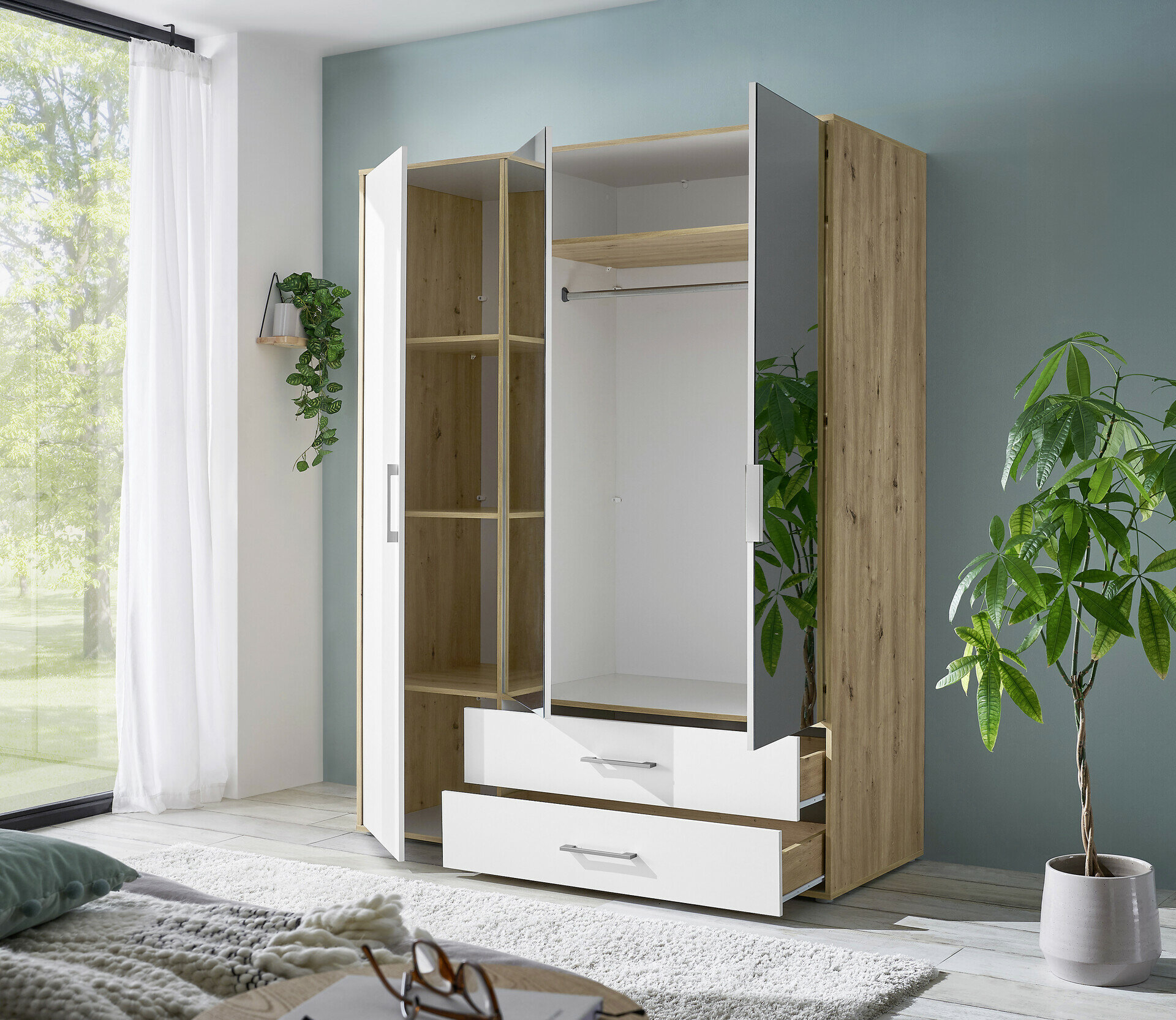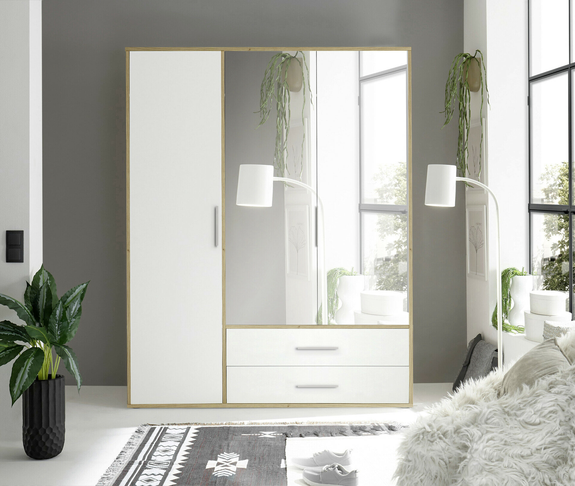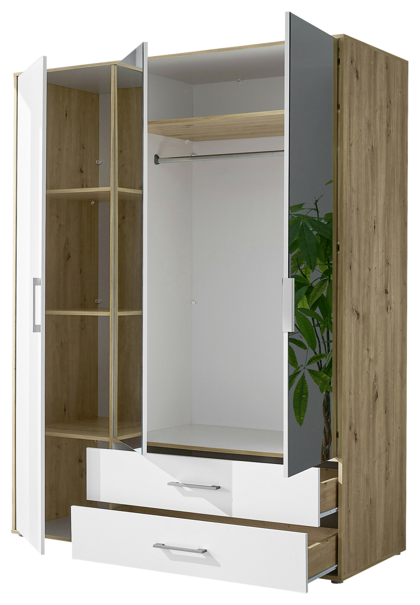 1 Holztür/ 2 Spiegeltüren 2 Schübe