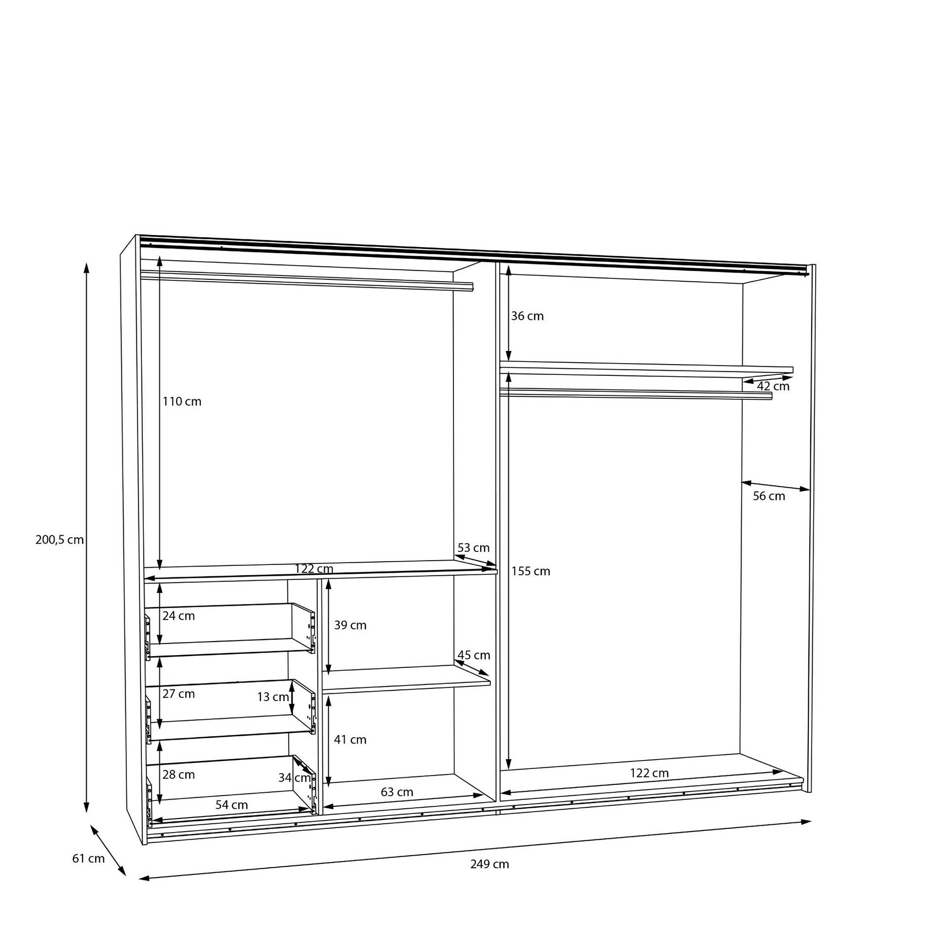 ca. B: 250,1cm, H: 200,5cm, T: 61cm