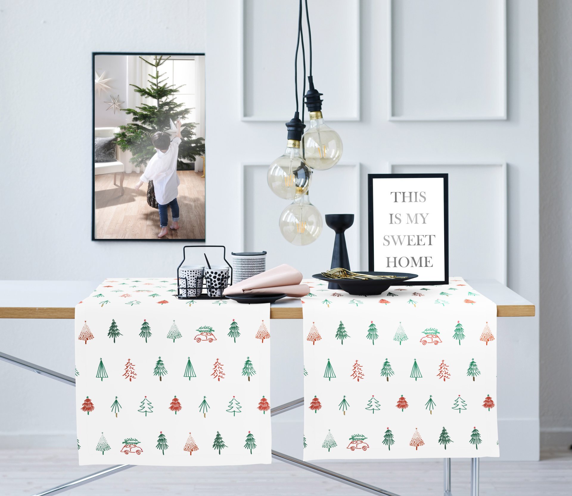 skizzierte Tannenbaumformen und kleines Auto