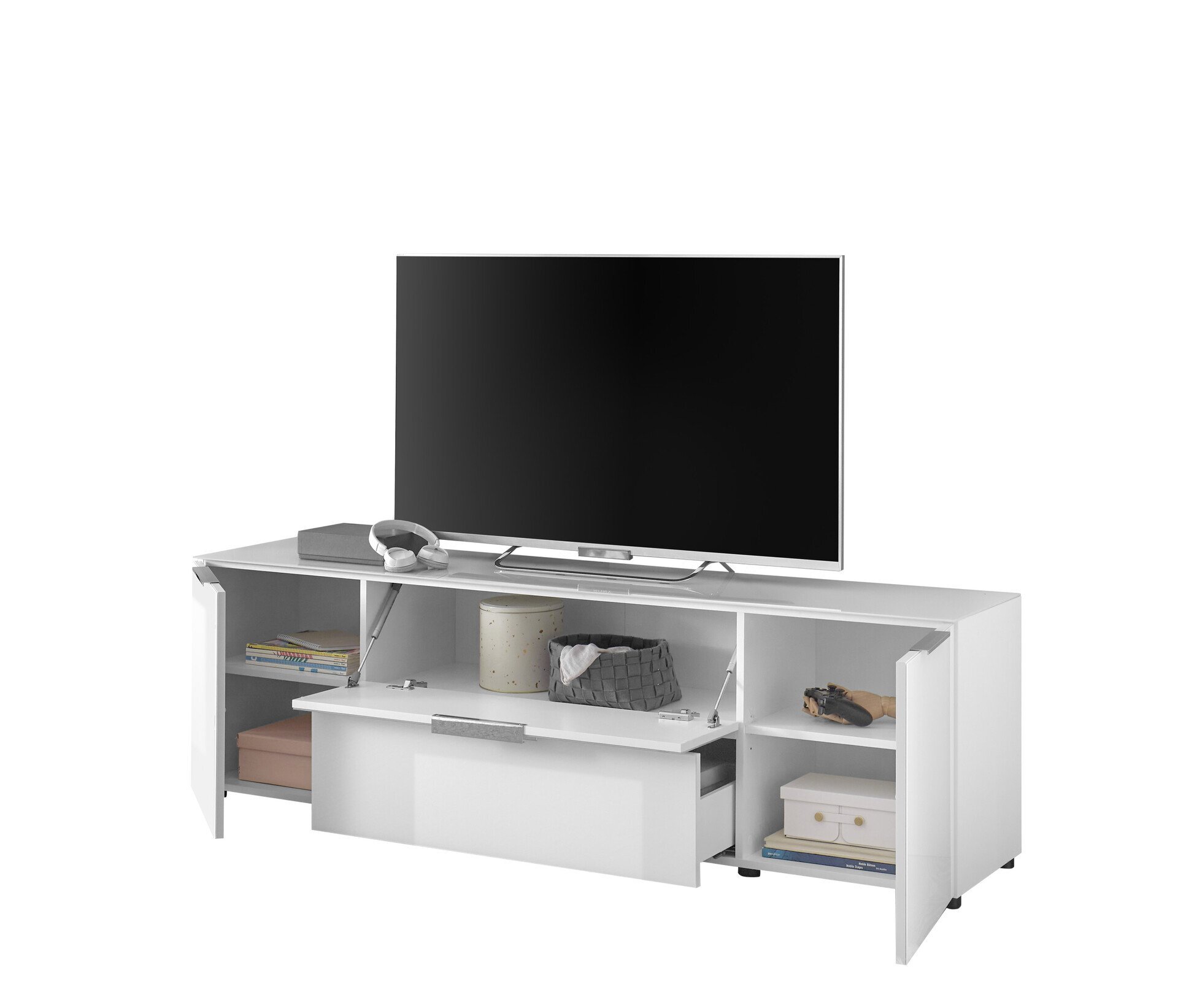 2 Türen,; 1 Klappe,; 1 Schubkasten,; 2