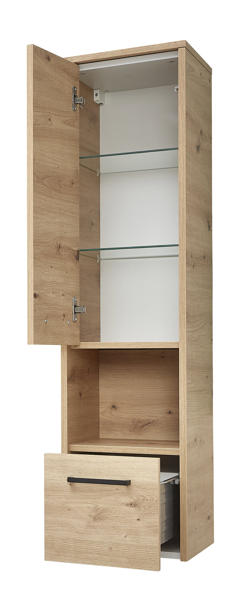 1 Schubkasten, 2 Einlegeböden