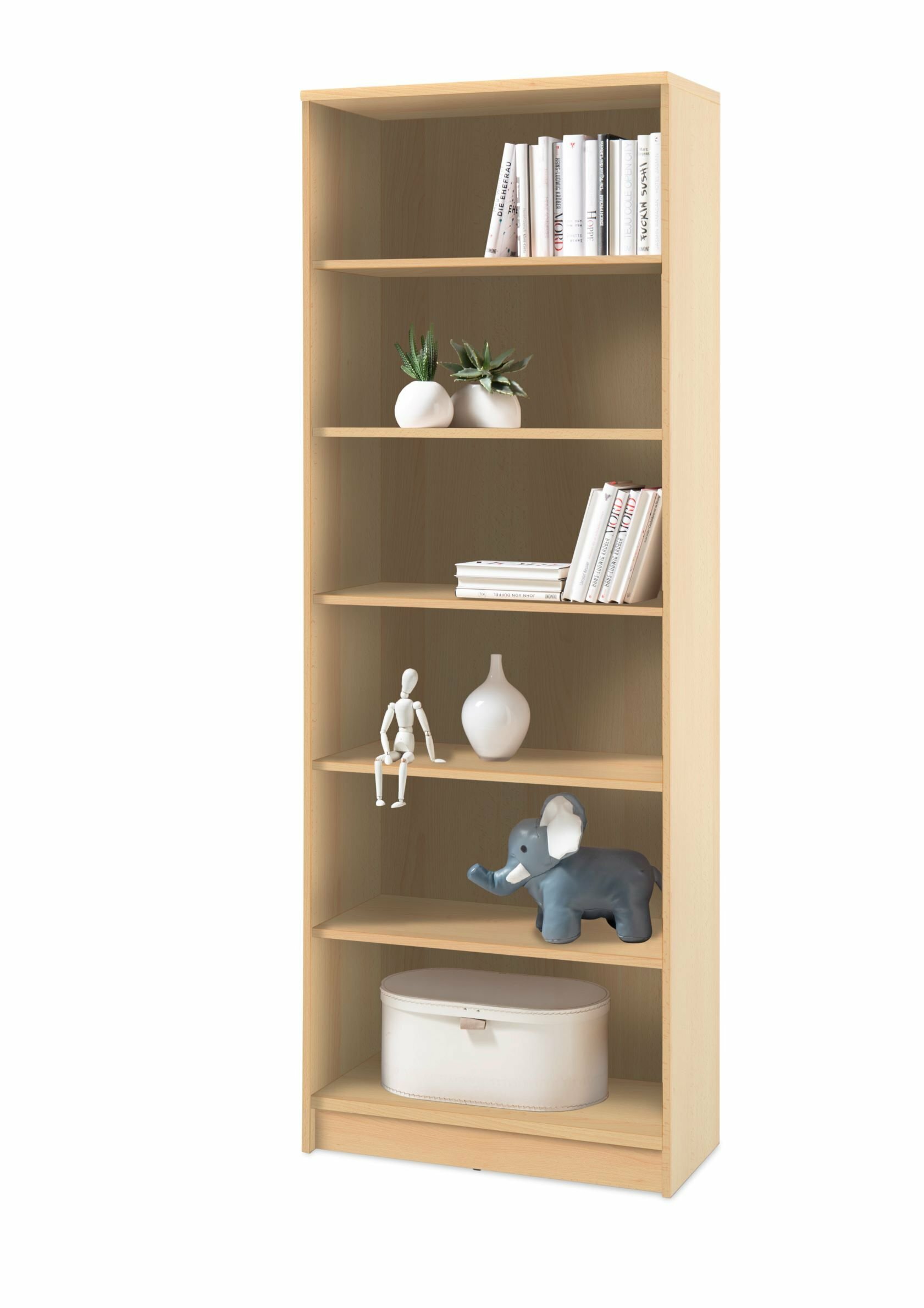 6 offene Fächer,; 4 Einlegeböden verstellbar,; 1