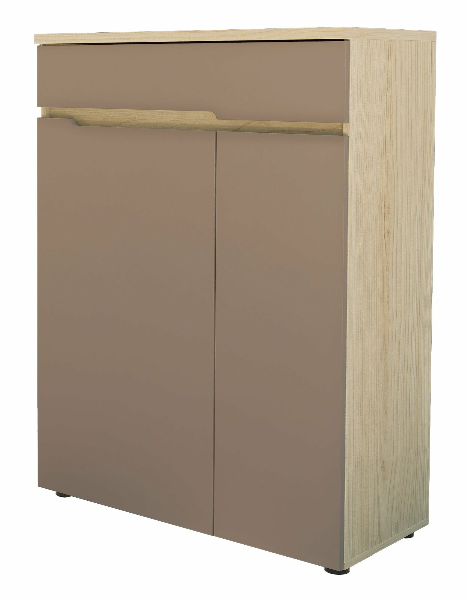 1 Schubkasten, 2 Holztüren, 3