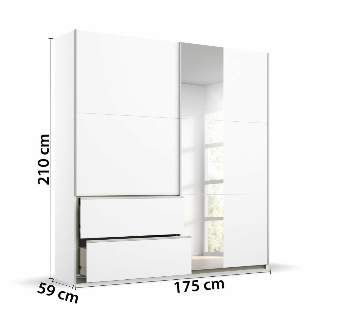 2-türig, 1 Spiegeltüre, 2 Schubkästen,