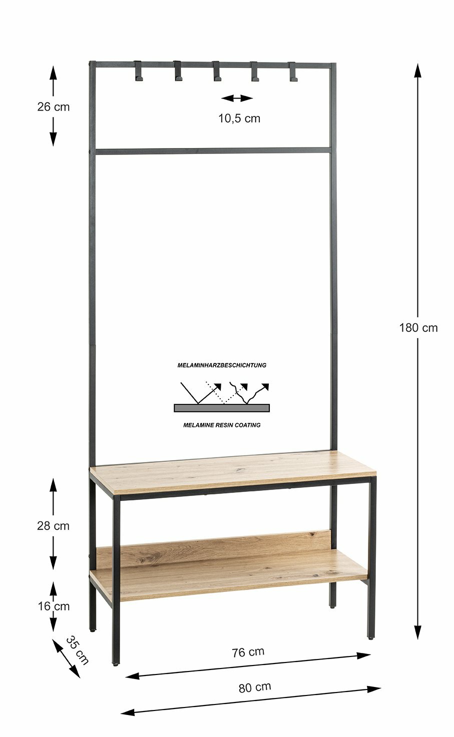 Kleiderhaken, Ablagen aus MDF Dekor Eiche hell