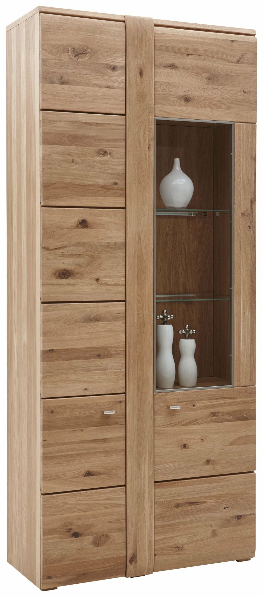 1 Glastür rechts, 1 Holztür links, 2 Glasböden