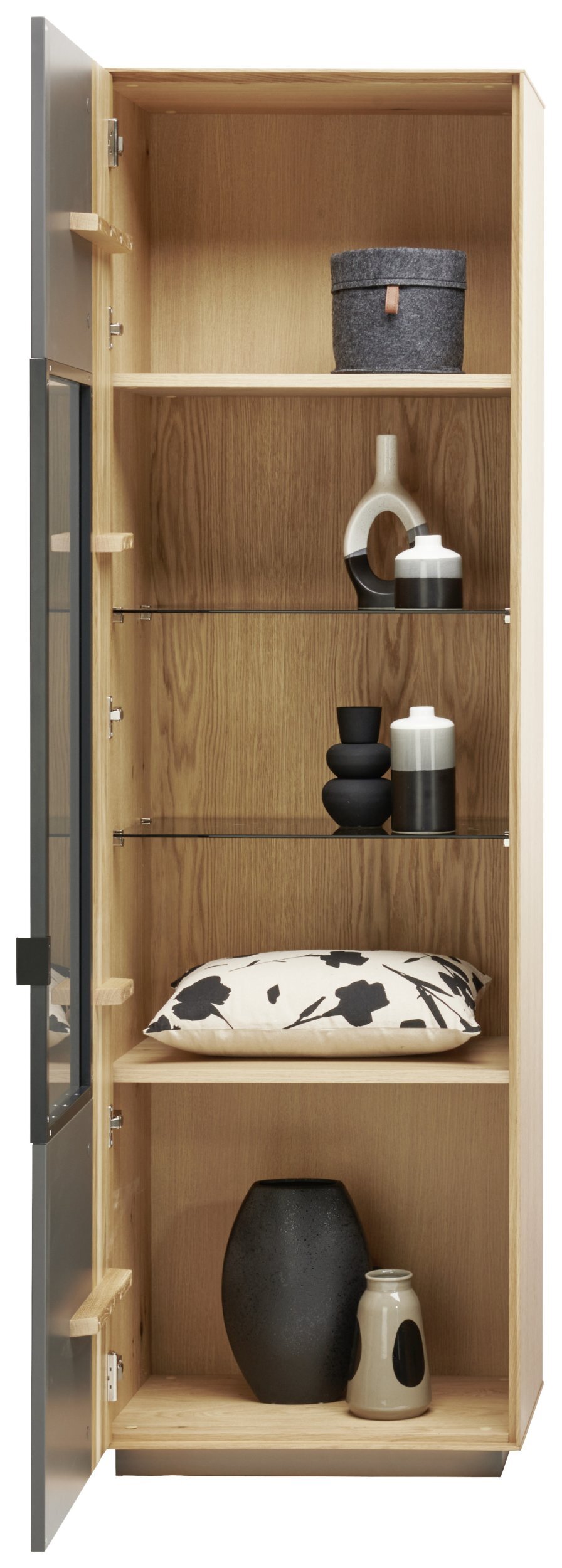 Front: Grau lackiert/Asteiche massiv